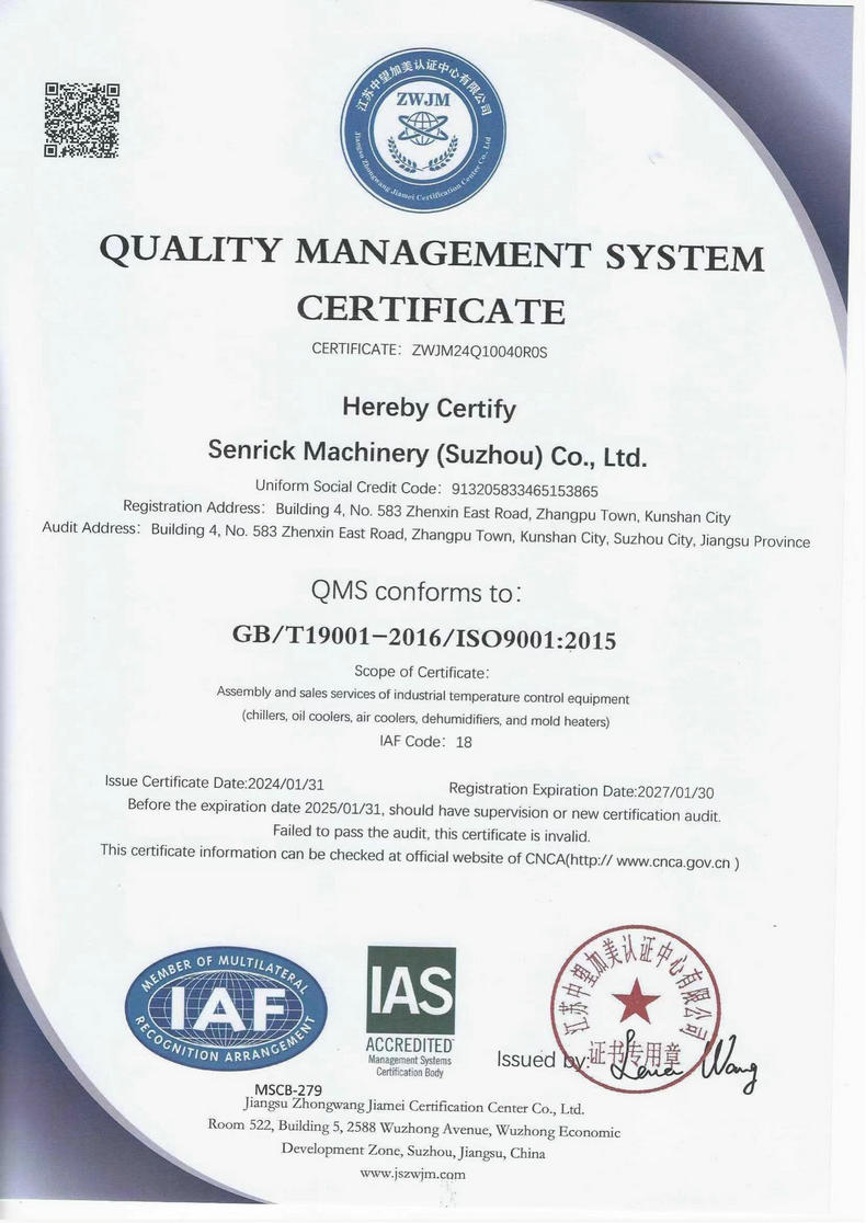 森瑞克機(jī)械(蘇州)有限公司(簡(jiǎn)稱:SENRICK)是一家中外合作性企業(yè),引進(jìn)技術(shù),專注于工業(yè)制冷設(shè)備,工業(yè)溫控設(shè)備,非標(biāo)制冷設(shè)備,集激光,化工,真空設(shè)備輔機(jī)等集研發(fā)、生產(chǎn)、銷售、服務(wù)于一體的的現(xiàn)代化科技企業(yè)。公司擁有完善的制造設(shè)備,先進(jìn)的檢測(cè)系統(tǒng),獨(dú)立的加工、生產(chǎn)工藝,一支開(kāi)拓創(chuàng)新專業(yè)有素的技術(shù)人才團(tuán)隊(duì),以及全面的質(zhì)量控制體系,為產(chǎn)品質(zhì)量的不斷優(yōu)化提供了強(qiáng)大的保障,以確保滿足不同市場(chǎng)的各種需求。經(jīng)過(guò)多年的努力企業(yè)相繼研發(fā)生產(chǎn)出了工業(yè)冷水機(jī),工業(yè)冷風(fēng)機(jī),工業(yè)冷油機(jī),工業(yè)機(jī),低溫冷水機(jī),低溫冷風(fēng)機(jī),低溫冷油機(jī),螺桿式冷水機(jī)...